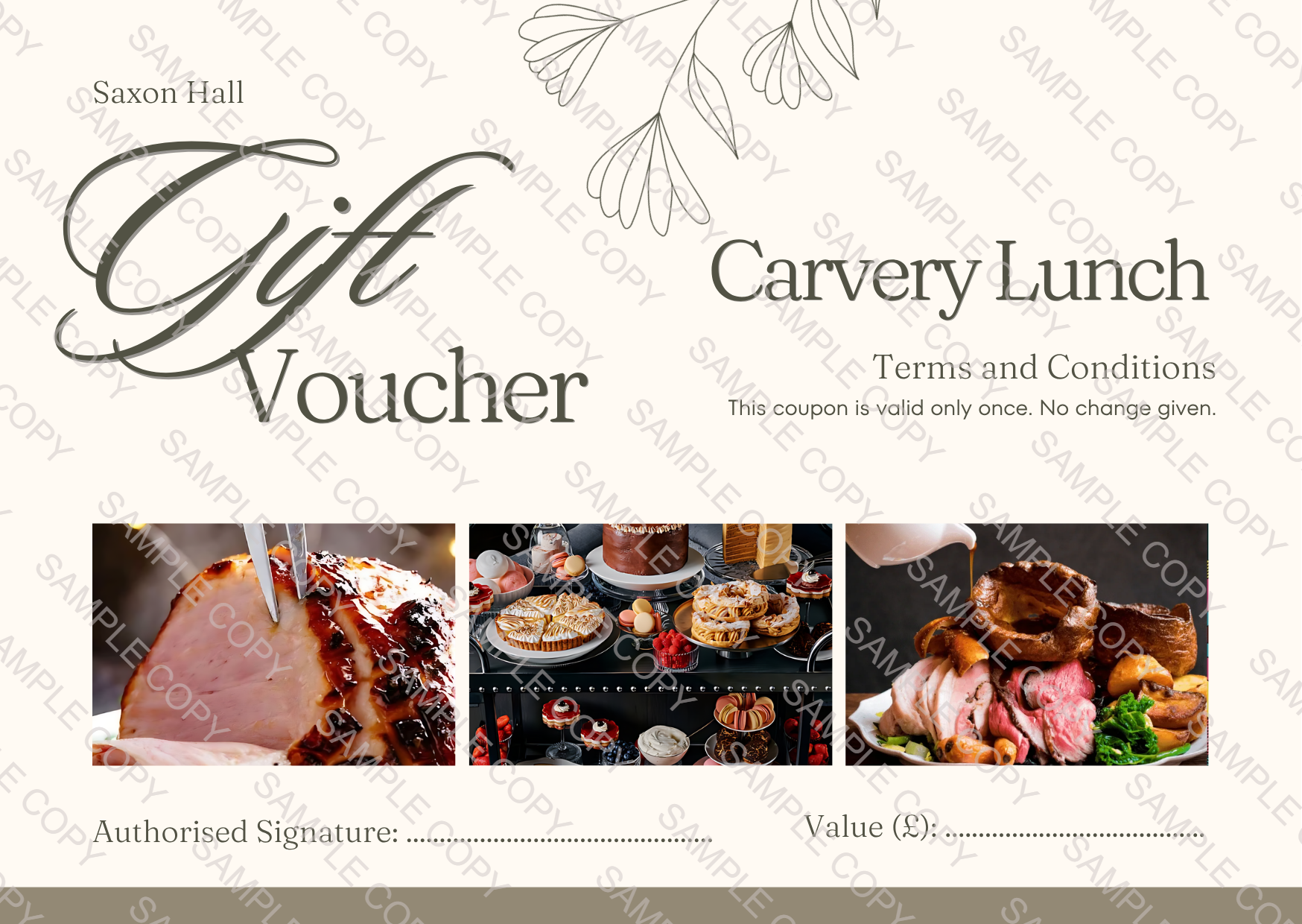 Why Choose Our Carvery Gift Vouchers? There’s nothing quite like the warmth of a traditional carvery, and at Saxon Hall, we’ve perfected the art. Our gift vouchers make the ideal present for birthdays, anniversaries, thank you gifts, or simply to show someone you care.